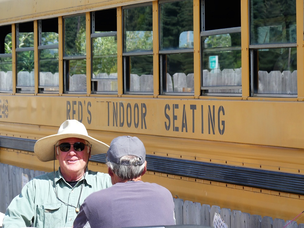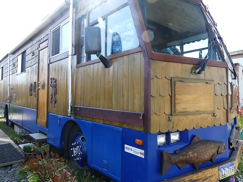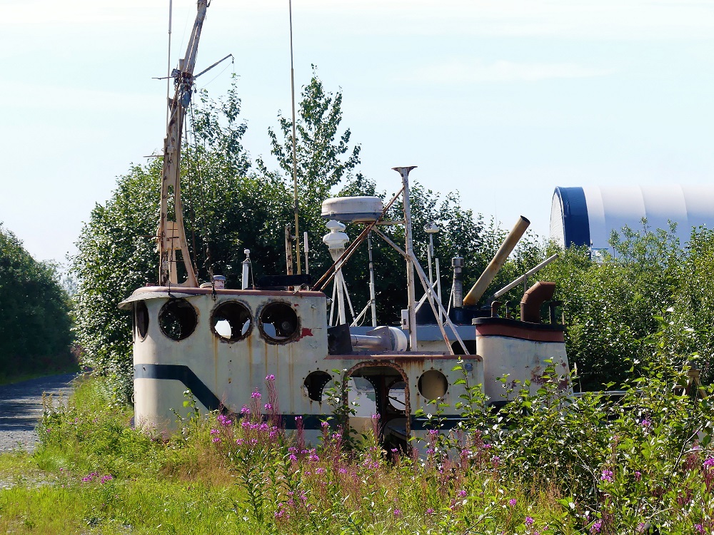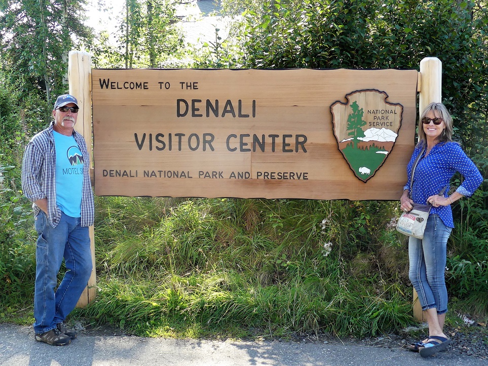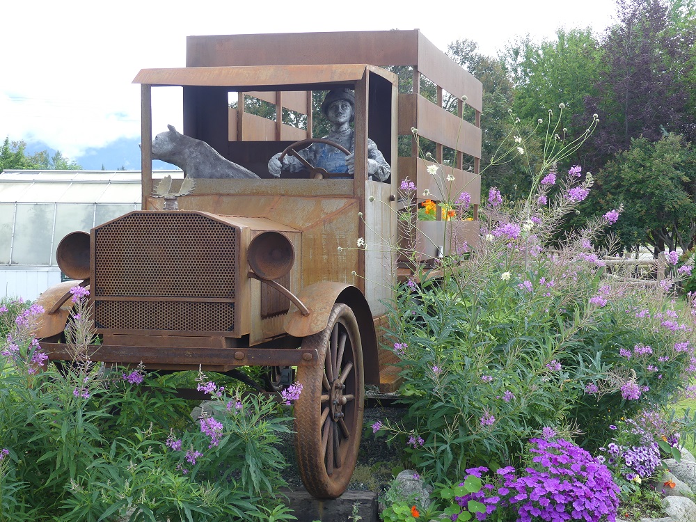 07/28/2019 – I woke up early and took Sierra for a walk and then crawled back into the tent and slept for another couple of hours. Bob and J&J have been very accommodating and offered us their couches but we are already relying on them for rides and meals and so opted to at least try the tent gig. If the RV is not repaired and it continues to rain we may need to take them up their offers. We are blessed with good friends and their morning coffee was hot and welcome after a damp night. Mike and Jim drove over to the Repair shop but as expected for a Sunday, no one was around and things were locked up tight. We decided to take a drive over to Palmer to explore the town. They are known for their enormous vegetables in this farming community. We walked through the garden next to the visitor center and museum. This area was settled when the US government offered land in the newly acquired territory of Alaska to anyone who was willing to build a farming community there. While at the visitors center, Mike’s phone rang and he almost didn’t pick it up as he did not recognize the number. Our RV was repaired and ready to be picked up. Thank goodness for this unexpected but very welcome news. We cut our tour of Palmer short and drove back to Wasilla to pick up the RV. With a new fuel pump, filter and seal on the inside of the fuel tank, we gratefully climbed back into our little home and drove her over to the Lake Lucille campground to rejoin our Caravan. Just a couple of days ago I was feeling like she was a bit small for this trip but after that night in the tent she felt spacious and warm. Thanks to the folks at EGM Automotive for their excellent service and going above and beyond to work through the weekend to get her back up and running.
