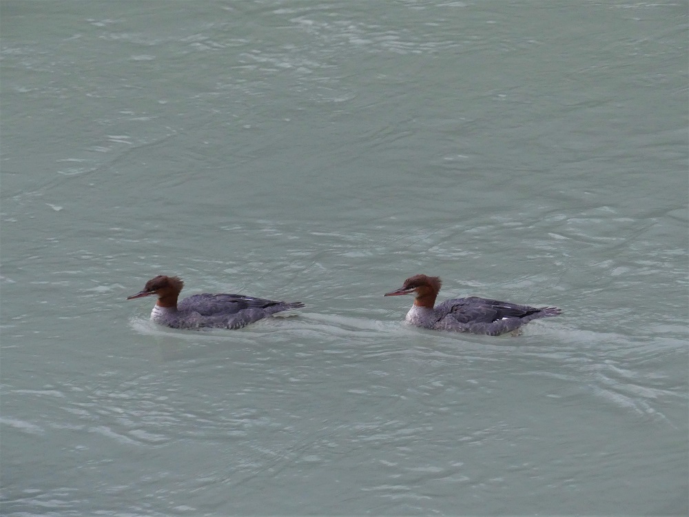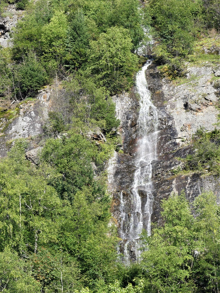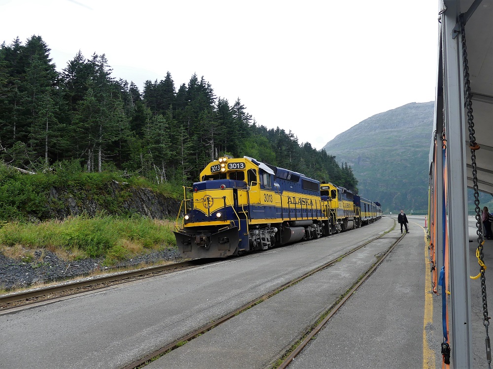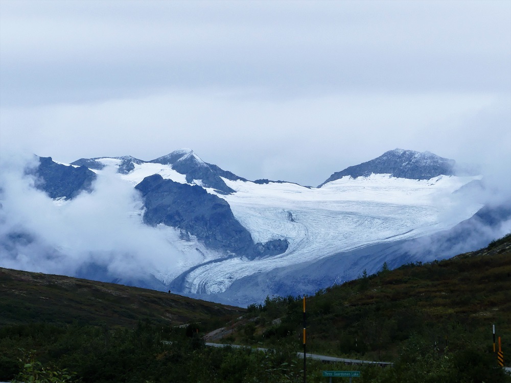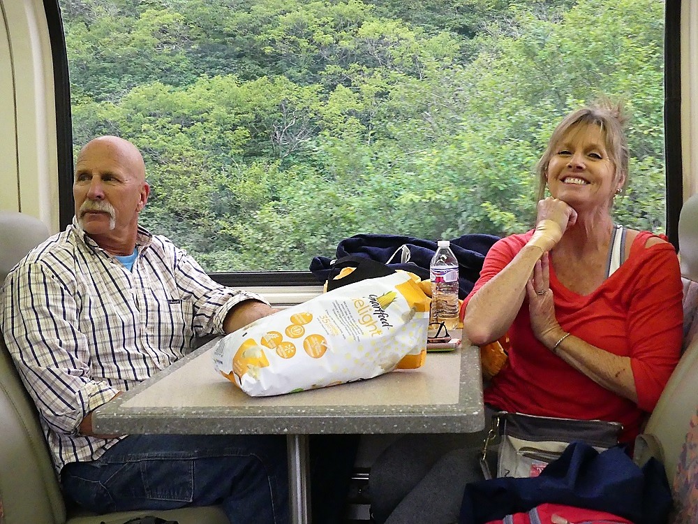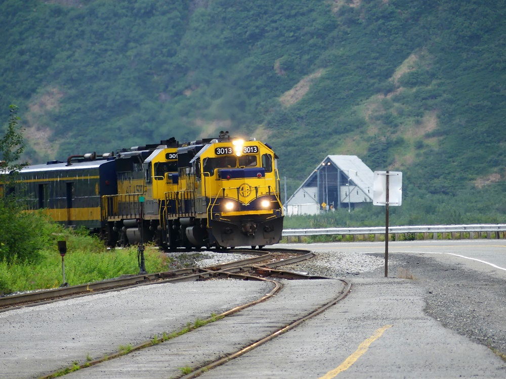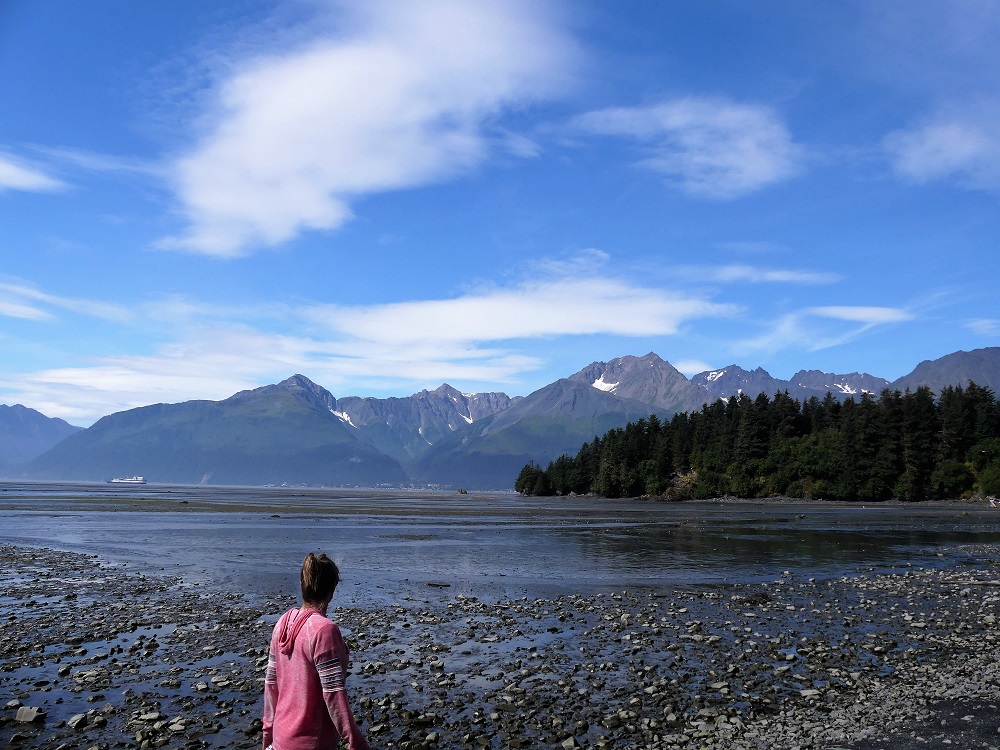 07/28 –08/02 Bob headed out early to get his Radiator repaired in Anchorage. J&J will be meeting with their friends Greg and Becky at an RV Park in Anchorage and we were headed to what we thought might be a campground on the outskirts of Anchorage called the Kincaid project but when we arrived we only found a large parking lot next to a dog park and a paintball park and no campground. We opted to drive down toward the town of Whittier as there are a couple of USFS campgrounds that offer good bicycling and hiking opportunities. We were delighted to find the wonderfully maintained, clean, paved, and spacious sites at the Williwaw campground. It has a Salmon viewing platform over the Williwaw creek which we checked daily and finally saw some red sockeye salmon swimming upstream to spawn. There were numerous nature trails to hike and bike on. With his new radiator in place, Bob joined us a few hours later. We rode our bikes and made plans to ride the Alaska railroad on a day trip out of Whittier, AK. J&J along with their friends, who came along for a day trip, joined us at the campground along with their 2 king Charles spaniels the next day. We all enjoyed a walk out to the Begich-Boggs visitors center on the Northwest Shore of Portage Lake. From this vantage point we could see 5 different glaciers surrounding us. The visitors center was very interactive and had many hands on exhibits and Audio, visual, cultural, and historical displays. It also had a beautiful and informative film on the natural history and culture of the area. As the filmed ended the screen lifted in the theater and a curtain opened to windows looking out over a stunning view of the lake and glaciers. Very well done! We really liked all this area had to offer and so kept extending our stay. We rode out bikes out to Moose Junction (no moose) and then picked up Sierra and gave her a run on the trail out to Byron Glacier. On our final day there, we loaded up our Camper, aka the party bus, with all 5 of us and 2 dogs and made the drive through the longest train/single lane vehicle tunnel 2.4 miles through the mountain to the deep water port of Whittier where we spent some time exploring the town. We left the dogs in the camper and boarded the train for the round trip scenic ride back through the tunnel and through the mountains past Spencer Glacier. At our turn around stop at Grandview station we paused for a bit to stretch our legs and pick wild blueberries. We did not have much luck seeing wildlife but did enjoy the ride and the scenery. Upon arriving back in Whittier, the Dogs were happy to see us and we made our way back through the long tunnel for the 4th time to the Willwaw campground. We all agreed this was a wonderful place to call home for a few days.