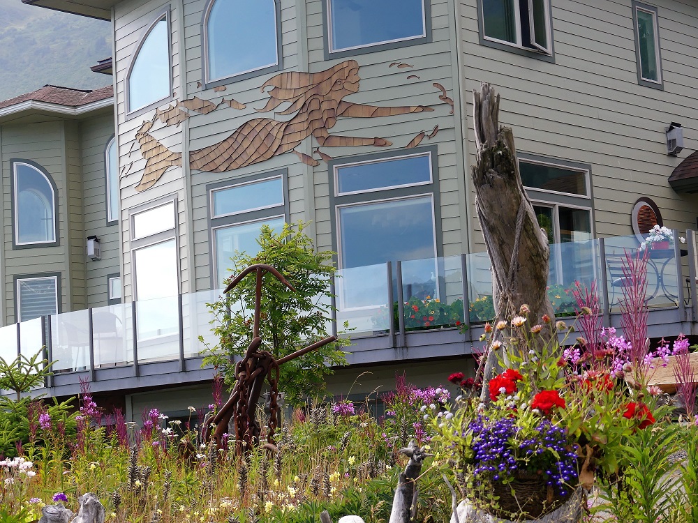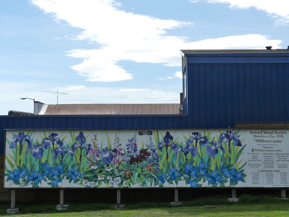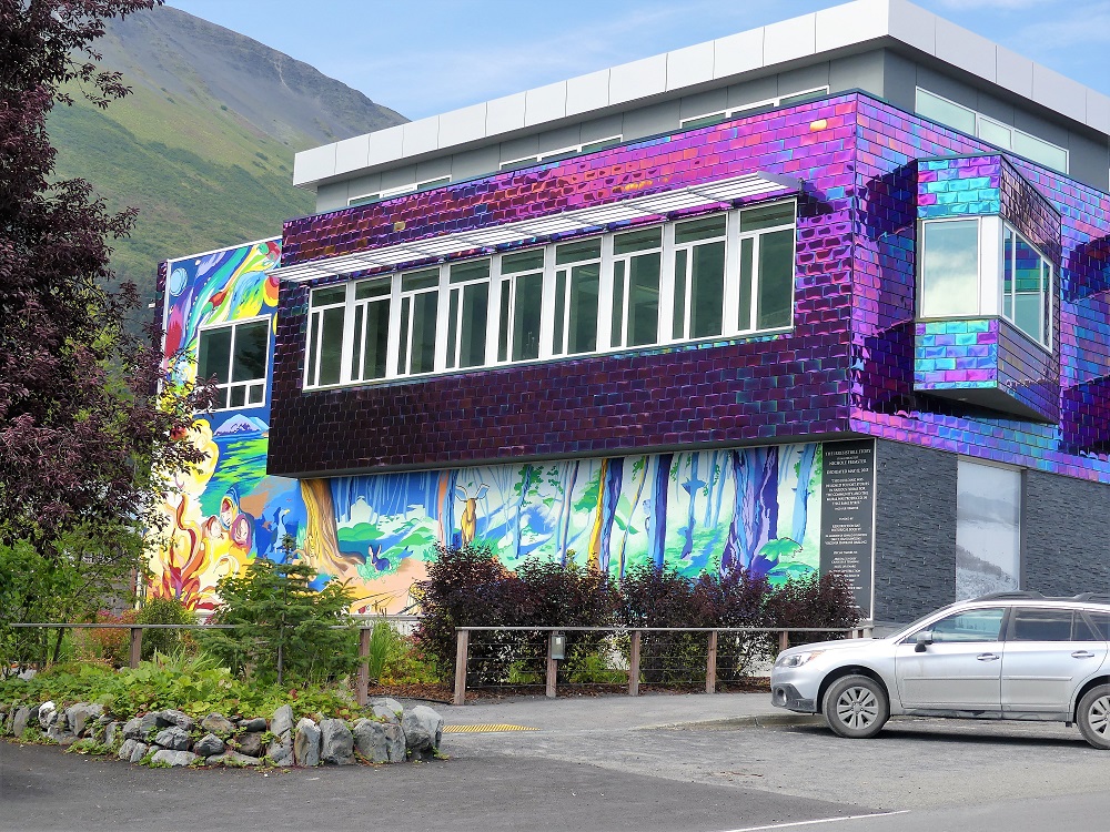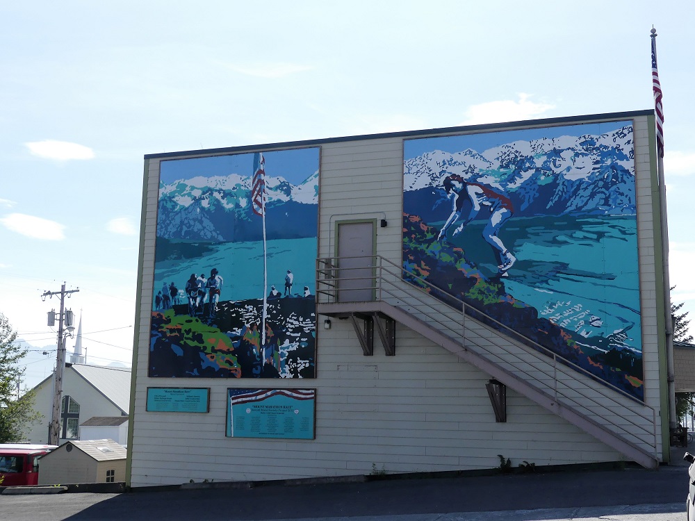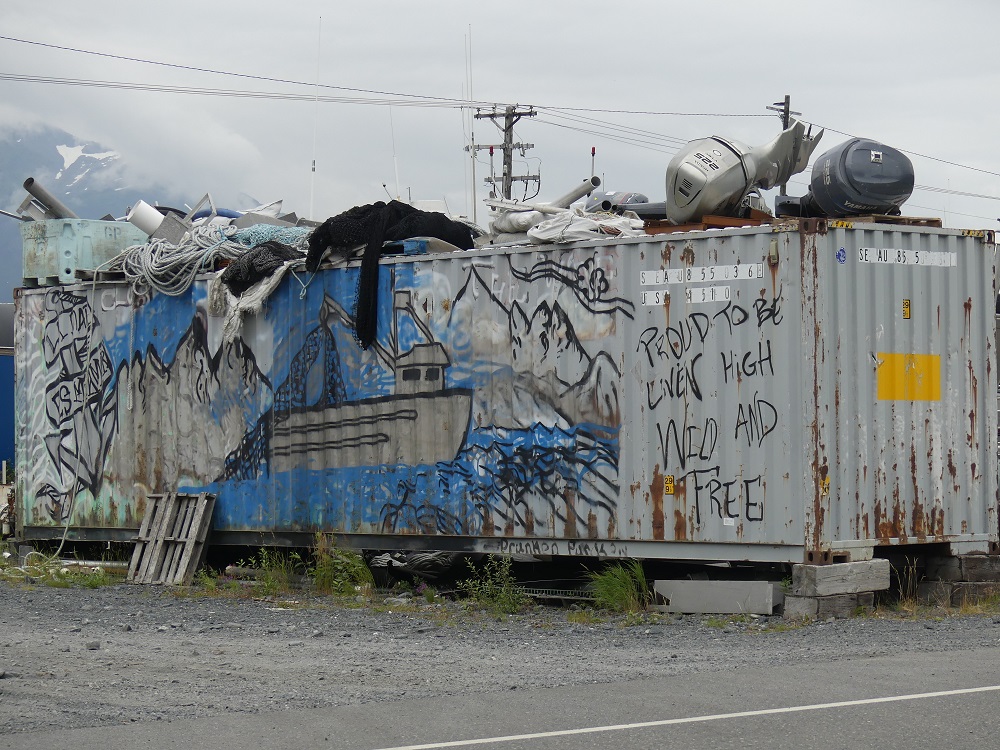 08/02 – 08/05 As much as we have enjoyed Williwaw it was time to continue our journey. We headed south to Seward, AK. We had a small delay when one of the tires on J&J’s 5th Wheel blew, but the pit crew jumped into action and we were back on the road in minutes. The town of Seward offers camping right along the bay as the structure of the soils there were found not to be stable enough to support buildings in the event of another earthquake. The 1964 9.2 Earthquake destroyed many towns along Kenai peninsula. The city did not rebuild on the waterfront and has wisely installed fee stations all throughout the area and now charges $20 per night to camp there. We can’t complain as they have a lot of amenities to service the ever increasing number of RV’s that travel here in the summer. Dump Station, Potable water, bathrooms and hot showers and areas for Tent campers as well. We spent a the next few days riding our Bikes around town, fishing, and sampling the local fare. Sierra and I even joined a local 5k run to support the Alaska Sea life Center, an aquarium and sea mammal rehab. I figured it was at Sea Level and a good one to ease back into. I came in 5th in my age group. Of course I did not see how many in my age group ran the race there might have been only 5 but it was for a good cause and I got a T-Shirt and admission to the aquarium on that day. This is a popular stop for Cruise ships as there is a vibrant downtown and lots of little shops and restaurants. I even caught a glimpse of Bigfoot here! We had a great burger at a popular local burger joint named Reds that operates out of busses and a fancy dinner at Ray’s Waterfront. We would heartily recommend both. I spent one day just riding around photographing the murals around town. Although very busy, this colorful town has lots to offer.