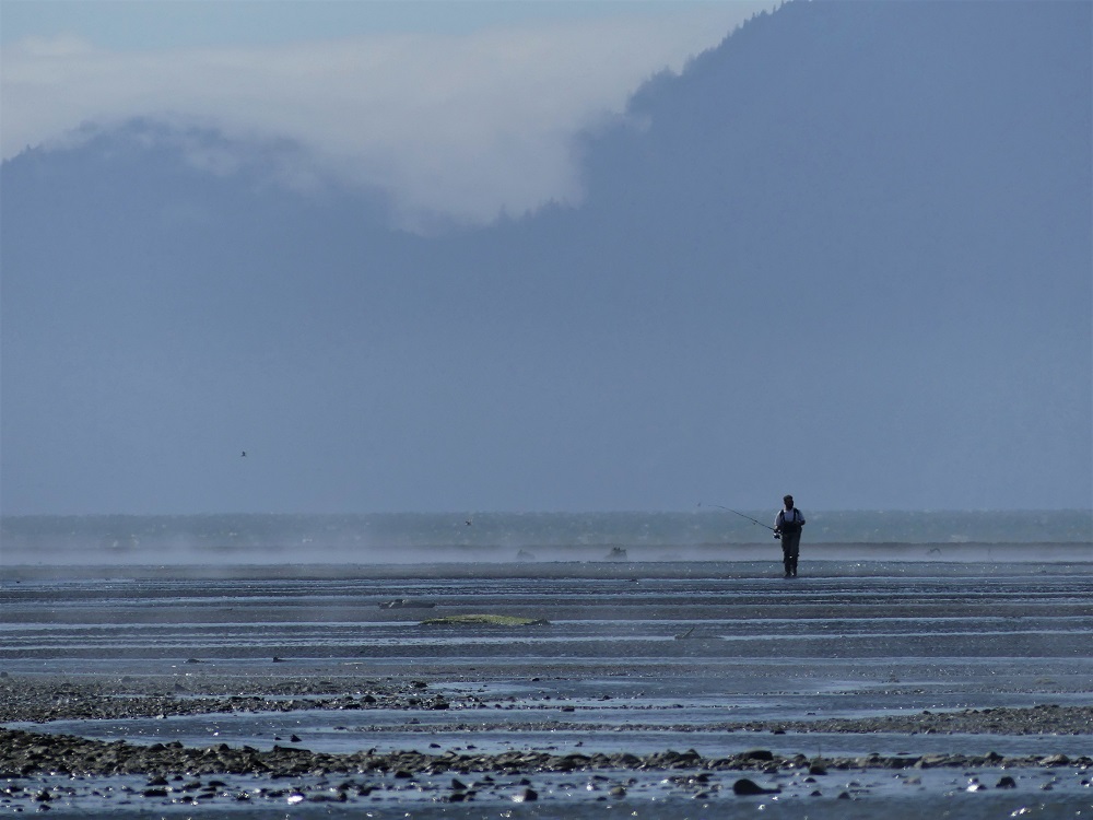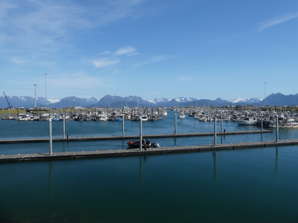 08/05 -08/07/19 We made a brief stop on the way out of Seward at a small Weir where we watched the Sockeye salmon leaping to swim upstream to spawn. We headed across the Kenai Peninsula and on down to Homer. We drove out to the Spit and although very touristy it is a fun place to visit and heck we are tourists. Homer is know for it’s marvelous Halibut fishing but at over $300 per person for a charter we opted to fish from shore. No Luck. We did however purchase some wonderful fresh Halibut and Scallops and spent time bike riding, watching the local fisherman, SUP surfers, and taking walks along the elevated boardwalks through the many shops that line the Spit out to Lands End, the southern most point of the Kenai Peninsula. We all enjoyed and admired the unique and unusual sites around the Spit each in our own way. Of Course our visit was not complete without a required stop at the Salty Dog Saloon where we added our names to the thousands of others who have tacked a dollar bill up on the walls, ceilings, and doors of this infamous bar.