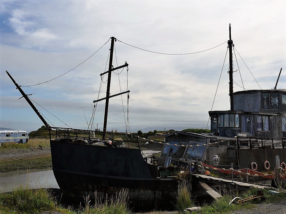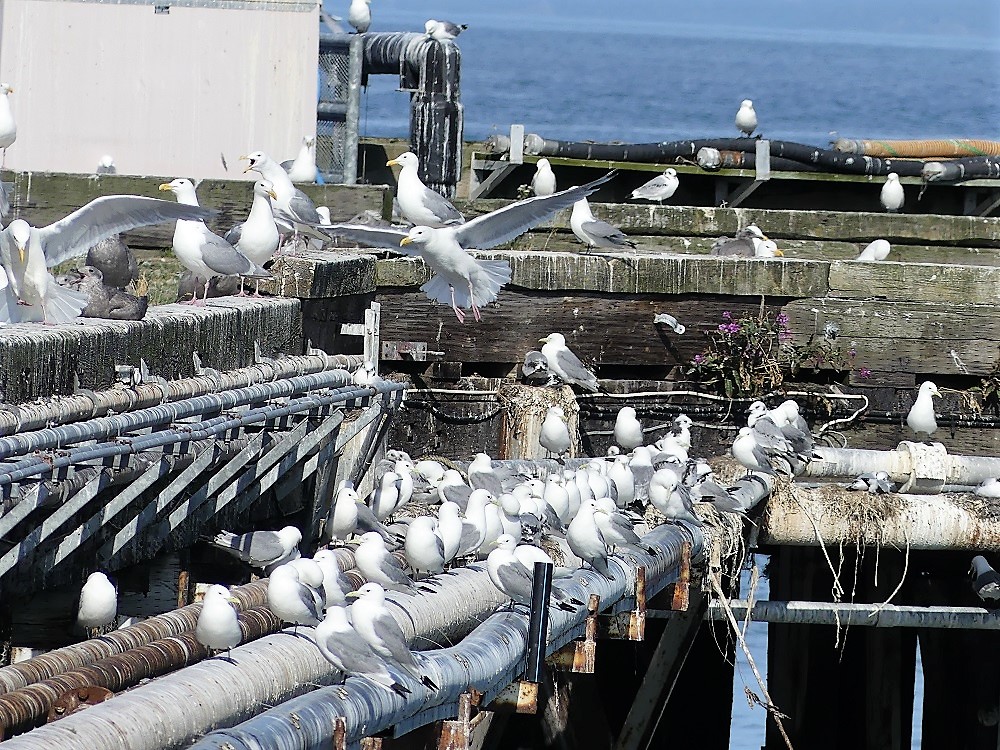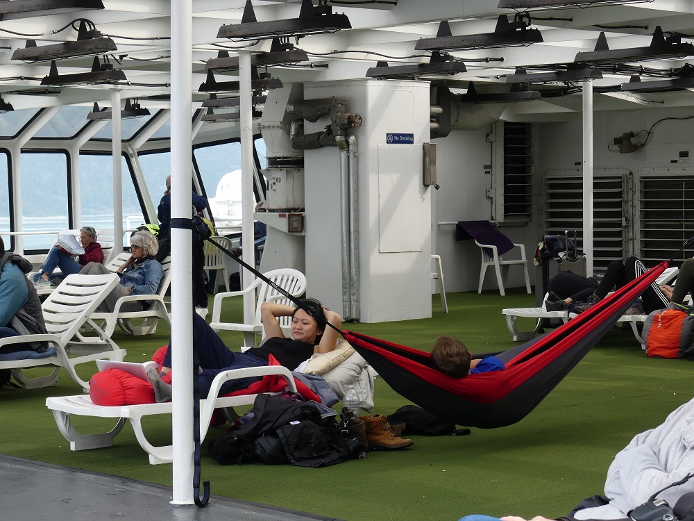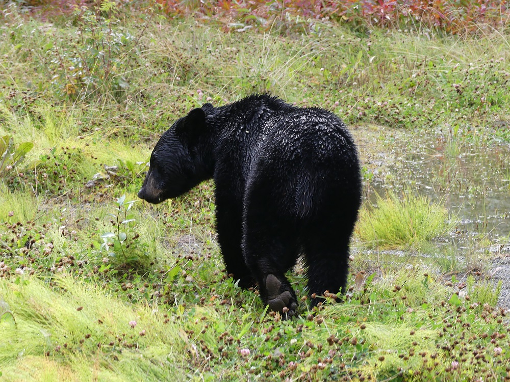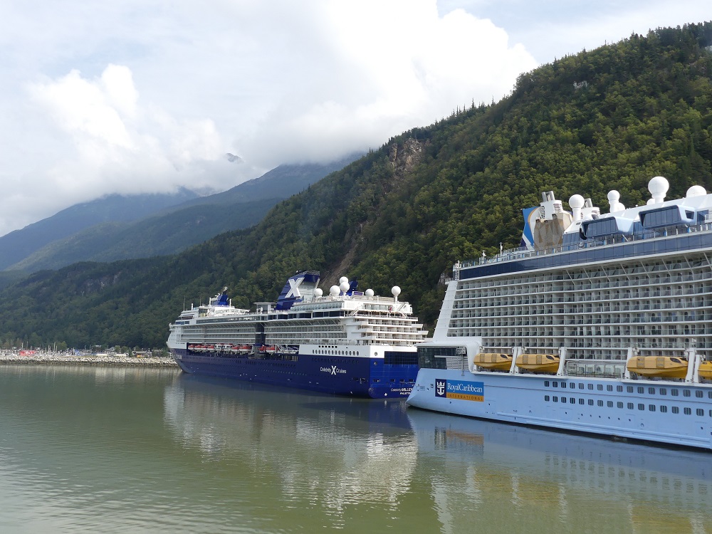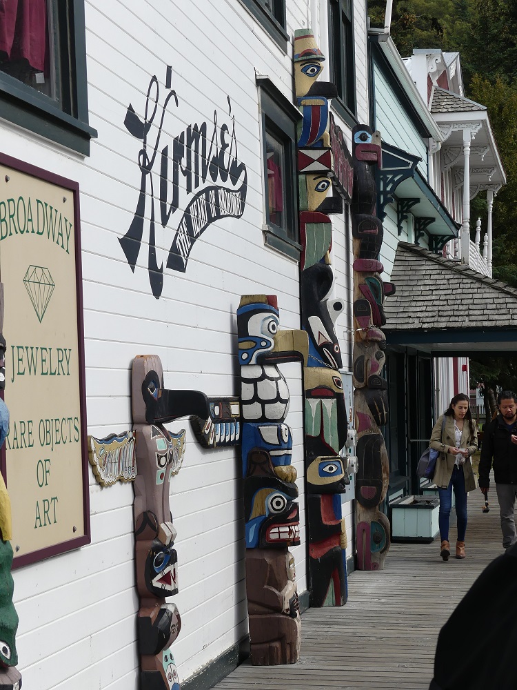 08/26 – 08/29/2019 We purchased passage on the ferry from Haines to Skagway in order to avoid having to backtrack. You know we couldn’t go on a trip without getting on the water at least once. While waiting in line for the ferry to begin loading the vehicles, I took Sierra for a last walk and ended up having to run to catch up with the Camper as it was pulling onto the ferry. We locked Sierra in the Camper and made our way up on deck. The ferry has cabins, showers, a café, numerous seating areas inside and out. There was a large solarium where many people gathered on lounge chairs and some folks even pitch tents on the deck using duct tape to secure them. The ride took just under an hour but it was nice to be back on the water even for a short ride. As we arrived in Skagway we saw three cruise ships docked and pulling off the ferry we found ourselves in a Disneyland like atmosphere with crowds of people wandering the streets and very little parking. We were finally able to find a parking spot and spent a few minutes among the crowds, gift shops and took a few pics, but feeling a bit overwhelmed we carried on north toward Whitehorse. and retraced our route back through part of the Yukon. We stopped a night at Squanga Lake Govt. Camp that had free firewood for our evening campfire. The next morning we continued on down to the Cassier Hwy 37. We found the Cassier to be in better condition than most of the Alaskan Hwy. As we traveled south we encountered a few black bears and moose enjoying the clover along the road. On the whole, We have seen more wildlife in Canada than in AK. We spent another night at Kinaskan Lake Provincial Park where we enjoyed a beautiful evening walk along the lake. The mushrooms were plentiful and the sunset over the water very pretty. Our Hyder destination is the most southern town in AK accessible by road. It is also known for Bear Viewing and we were still pumped about seeing bears from our time in Haines. As we drove Road 37A into Stewart, we passed quite a few large transport trucks carrying logs. The bay on the sister towns of Stewart, BC and Hyder, AK was full of floating logs waiting for transport. We camped down the road from the Fish Creek Wildlife Viewing area at Camp Runamuck where we caught up on laundry. We then went down and paid the fee to walk the boardwalk along fish creek where the chum and pink salmon were running so heavy you could almost walk across their backs. We enjoyed a wonderful halibut dinner at the Bus. And spent a couple of days visiting the viewing station but never saw a bear until we went to leave and saw one along the creek next to the parking lot and a mother and cub crossing the road down the way from the viewing station. Guess we really didn’t need to pay the fee but it goes to a good cause educating the public about the salmon, bears, and wolves of the area. We hit the bakery in Stewart on our way out of town the next morning and pressed on South.
