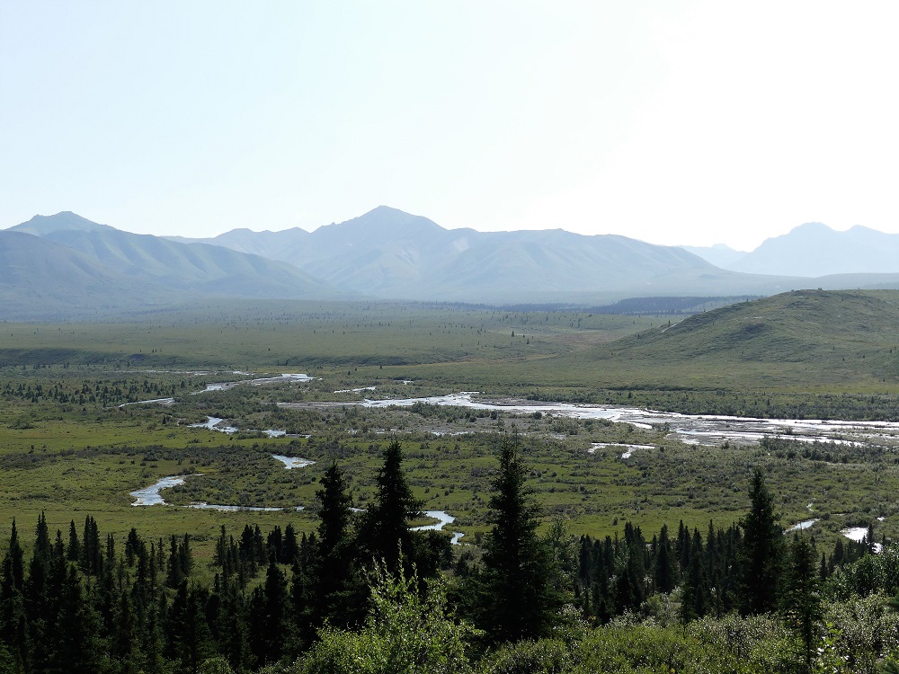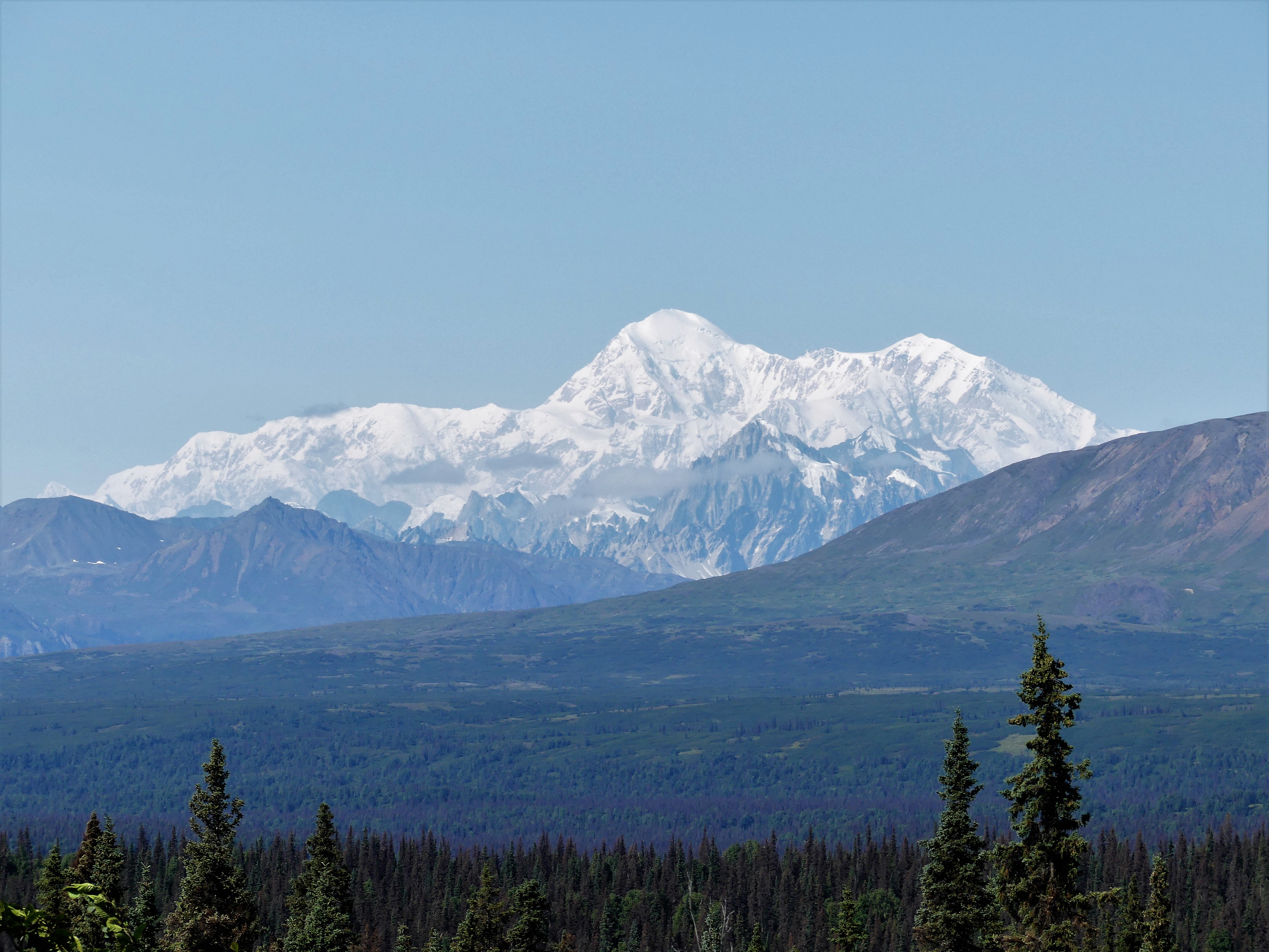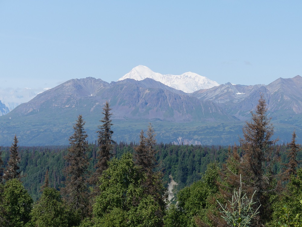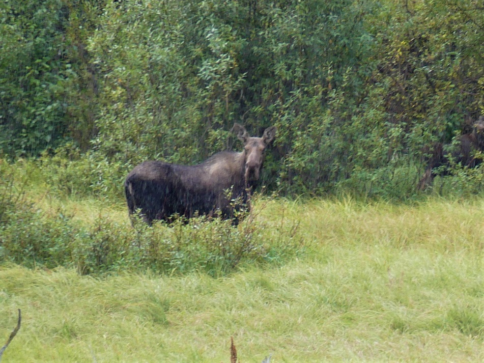 08/11 -08/13 Our Journey took us next to Denali where we had scheduled a Natural History tour into the Park by Bus. As we drove north we were blessed with clear sunny skies and a fantastic view of Denali from the South. It is my understanding that due to it’s extreme height of 20,308 ft. It creates its own weather and is only clearly visible about 30% of the time. We were lucky enough to arrive on one of those days. We made the Cantwell RV Park our home base for our time here found it to be clean and well maintained with good WiFi a nice selection of books to exchange and hot showers. We hiked around the Denali Visitors Center and were amazed at the variety of mushrooms growing. We met our bus and our tour guide Chris who took us into the park for our tour. There are a number of choices for tours but we chose the shorter one. When the bus arrived it was already pretty full and we wondered if there would be space for us all but Chris has roped off some seats for our group as we had made reservations in advance. This tour took us approx. 23 miles into the park and we were able to photograph both Cariboo and Moose. The Park itself was set up specifically to protect the wildlife in this area and is a great place to study the natural behavior of the animals. Everyone is encouraged to keep their voices low when the bus stops for wildlife. We were also treated to a talk by a native Athabaskan about his culture at one of our stops in the park. The rangers here patrol year round and use dog sleds in the winter. Again we were hoping to see some bear or wolves but were not lucky on this tour.