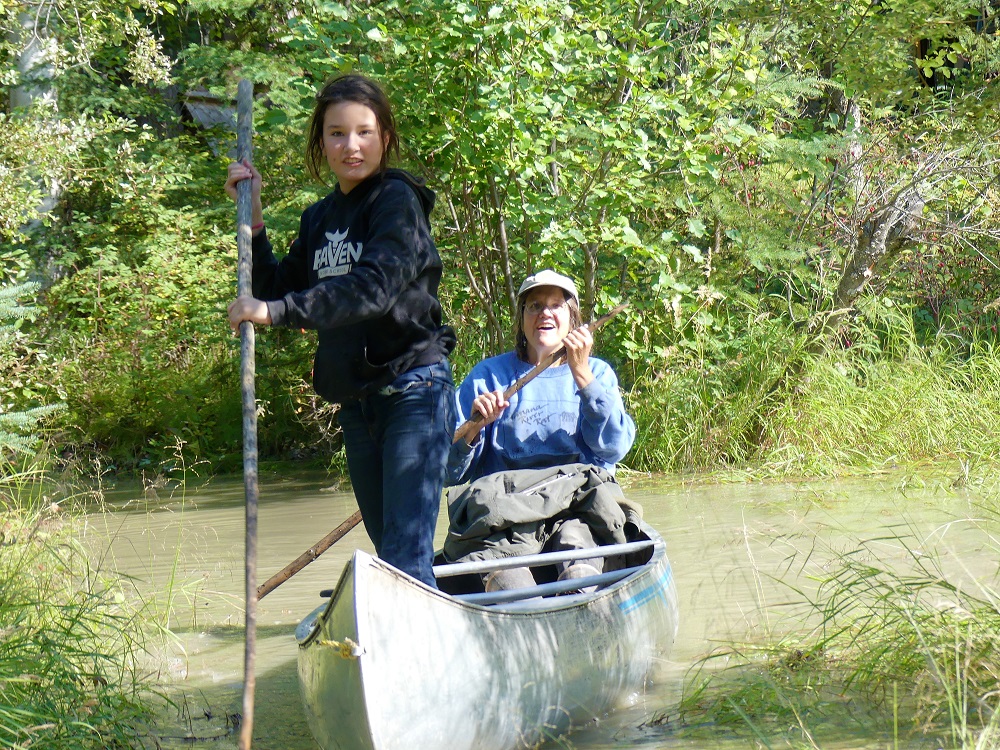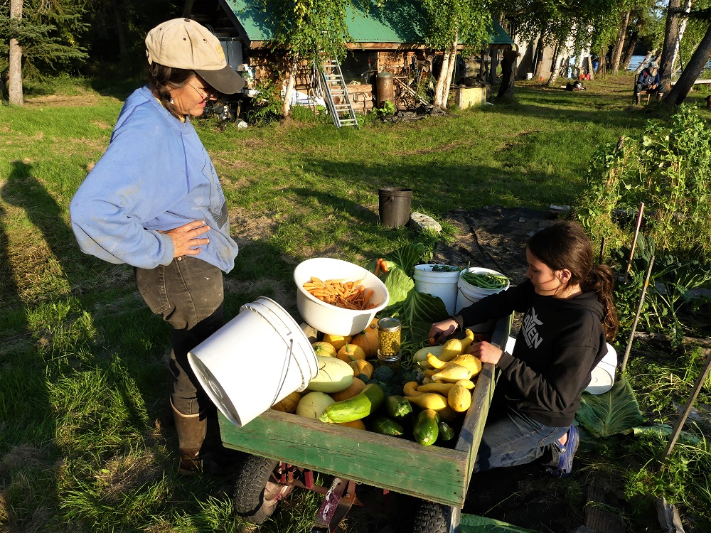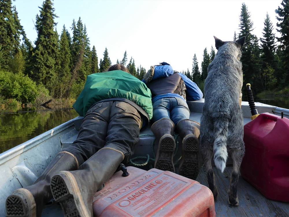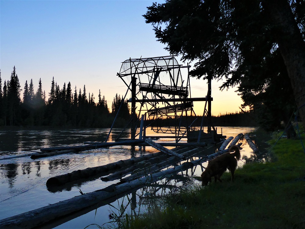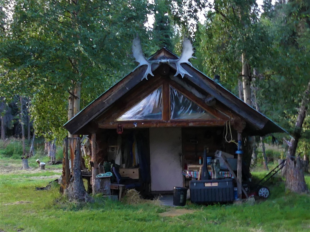 08/14 – 08/21/19 Our little Caravan made our way up to Fairbanks where we spent the night at Pioneer Park. We enjoyed exploring many of the historical buildings and museums and of course the proverbial gift shops. In the morning we said a heartfelt goodbye to Jim, Jackie and Bob who continued heading south through Canada back to the lower 48 while we spent the next week with our friends the Bouldings. We met up with Charlie, Robin, and Tory Boulding in Fairbanks after not seeing them since they had sailed in and visited us while we were Caretaking GSJ Island in the USVI. We had first met them in 2009 on the Island of Barbuda and again when we sailed together from St. Marten to the BVI in Nov of 2010. (Click on Highlighted Script for previous blog entries and Information) We told them that we would one day visit them in AK and we were determined to keep that promise. On Friday morning, we drove 4.5 hours from Fairbanks to Manley Hot Springs ahead of Charlie, Robin, and Tory while they finished up with Appointments. We met them at a small cabin they keep in Manley before loading up a couple of daypacks and the dog and headed down to the slough to help load up their boat with numerous groceries, supplies and a large Satellite Dish for one of their neighbors. The 5 of us, Sierra and their house dog Nook, boarded their river boat for the 20 mile trip to their homestead on the Tanana River. With Charlie at the helm, dodging sandbars, and floating debris, we relaxed as he navigated us up the rising Tanana River while the Robin and Tory pointed out places of interest and regaled us with stories of life along the river. After dropping off the Satellite Dish we made our way to their little slice of Paradise in the heart of the Alaska Interior. We tied off the boat to a tree next to their fishwheel and helped offload the supplies. They settled us into their one room guest cabin and proceeded to show us around their property consisting of around 35 acres, 2 Cabins, Shop, Smokehouse, Garden & Cache. Sierra was in dog heaven. She feasted on a number of pieces of dried fish that had been buried by one of their 6 sled dogs around the property and would curl up for a nap in the straw just like they did. The homestead is completely off the grid, true AK wilderness living. Their water is caught in rain barrels and is carried into the house for washing and cooking. Light is provided via windows and propane lights. They have a generator to charge the house batteries and a small solar panel that keeps their house batteries topped off. They do have some electric lights that are used when the generator is running. There is no phone but they do have the ability via Hughes Net to access the Internet so they can keep in touch with the outside world and their friends and family. There is no indoor plumbing but an outhouse is provided for comfort. They told us the small window in the front door was installed after a couple of close encounters with bears on their front porch. Their main cabin consists of a living space, a sleeping loft, a back bedroom, and a kitchen complete with an old fashioned but wonderfully functional wood burning oven, propane stovetop and another central wood burning stove for heat. Their refrigerator is a cold hole into the permafrost under the kitchen floor. Their garden provides them fresh vegetables and they hunt and fish for their meat. Part of their summer is spent at their Fish Camp where they catch the King Salmon that is a staple of their diet. We spent the next few days taking excursions on the Tanana and Kantishna Rivers, we fished for Northern Pike, picnicked, scouted for Moose, as hunting season is near, and visited some historical sites including part of the original Iditerod trail used to transport diphtheria serum from Seward to Nome AK. We stopped at the Tolovana Roadhouse that is now used for Sled Dog Excursions in the winter. We were also a witness to history in the making when we traveled up river and watched as the Kantishna river beginning to cut a new channel through a narrow bank that separated a mile long loop in the river. The Bouldings had been watching this spot during floods for the last 30 years knowing that it would happen one day. We helped where we could with summer chores, splitting kindling, harvesting the garden, helping with meal prep and clean up, and a bit of maintenance around their place. We picked green beans, summer and winter squash, carrots, kale, & a lot of peas. Robin canned 16 quarts while we were there. The rising river made it imperative to get as much as we could harvested. Robin fed us like kings and queens, baking bread and Apple Cake in her oven and an amazingly wonderful and huge King salmon filet for dinner. We also had a marvelous Moose stew and Bear and Cranberry sandwiches for lunch. Her Cranberry-banana jam is delicious! We spent our evenings together reminiscing and sharing stories of sled dog rearing and racing, sailing, & travels, past and present, as well as unpacking the large box of homeschooling books for Tory. As the river continued to rise the flooding around the cabins got deeper and eventually was above the level of our rubber boots, graciously provided to us by our hosts. We had to resort to using the canoe to travel between the cabins. I don’t know of too many people who would choose this lifestyle and Robin told us there are not too many people they would even consider inviting out to the homestead, especially during flood season. After the river had crested and started to recede, we decided we had better start our journey home to Colorado or risk being tempted to look for a place to build our own cabin in the AK wilderness. Charlie, Robin and Tory reluctantly carried Mike, Sierra and I back to Manley where we had parked the RV. We were sad to leave them but extremely honored and delighted to be their guests and felt so privileged to be allowed to experience and participate in this grand adventure for this brief but 