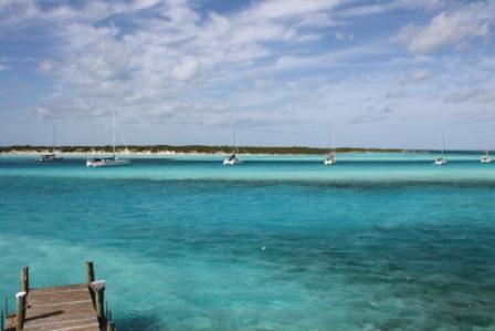 We made our way out of Square Rock Cut and into the Sound. It was very lumpy with swells out of the NE at about 4-5 ft. We motor-sailed on down the last 14.5 miles to Georgetown Harbor and anchored off of Monument beach, next to the Obelisk with a huge Osprey nest on top. We spent our first afternoon with Mike taking me around to show me Georgetown and so he could see what has and has not changed in 13 years. We met up with our friends Lee and Charlie of Windstar 4 and had a drink with them. Lee and Charlie are active in the community and Lee does the weather on the local VHF cruisers net in the mornings here in Georgetown. We then walked over to Hamburger Beach and across a small trail to the beach on the sound side. It is known to be a good shelling beach. Georgetown has gone out of the way to establish itself as cruiser friendly and to encourage cruisers to visit and stay. If offers numerous places to eat and drink as well as free garbage service and free water at the dingy dock in town. We reprovisioned with fresh fruits and veggies at the local Exuma Market. The community of locals and cruisers alike are very welcoming and eager to to answer any questions newcomers may have on Channel 68. General announcements go out every morning on channel 72 with the local businesses advertising their specials to the cruisers. A list of the current day’s activities and up and coming events are also announced. If a cruiser needs something or has something they want to get rid of that is also listed on the net. The day after we arrived, I attended a gathering of Artists who mostly work in watercolor and got to practice with them. We found that we had mutual Florida friends with one of the ladies. The Cruising community is very open and at the same time seems very small. Mike attended a Fishing Seminar, and in the afternoon we played volleyball on the beach and a round of Mexican Train Dominos. There is usually something happening every day. We have spent the last few days taking advantage of the many offerings. We have been playing fun volleyball in the afternoons and enjoyed yoga on the beach on Saturday morning. Mike bought me a Georgetown Regatta T-Shirt and was entered into a drawing and won a bottle of wine. He also picked up some great baked goods from Mom’s Bakery. We have enjoyed meeting the beautiful people of Georgetown and will have one of the local ladies weave a palm frond mat for our galley. We traveled over to Red Shanks leaving the bustle of the anchorages across from Georgetown. Our friends Lee and Charlie aboard Windstar 4 showed us an alternate route. We spent some time snorkeling and fishing for dinner. We are so excited to have Mom and Dad here with us this week and to share with them our new life. I know they will have a great time.
