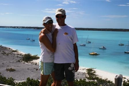 Mike has continued to improve and is himself again. He is still coughing but is back to his old ornery ways. I thankfully never did come down with whatever the boys had. We need to have some repairs done to the boat and we were hoping to travel up to Spanish Wells but the weather fronts just keep on coming and it looks like our chances for going back north are pretty much non-existent. The weather has continued to present with an El Nino pattern of continued cold fronts and we were expecting gale force winds that thankfully passed to the north of us last night. With the wind insisting that we abandon our northerly plans. We have adjusted our attitudes and will now change our latitudes. We are expecting NW to N winds at between 12 – 20 knots over the next 5 days so we will head south to the Turks and Caicos next and will check out the boatyard there. We spent this last week connecting and gathering contact information from many of our new friends that we have met while staying in Georgetown. We also were privileged to attend Chris Parker’s weather seminar on the 27th. He travels here to the Bahamas once each year to share with the cruising community his vast wealth of knowledge regarding the weather. We danced the night away at the opening day dance and no-talent show for the 30th annual Georgetown Regatta. I was also honored to be invited by a group of musicians to sit in on their jam session and learn some new stuff on the guitar. We will miss the many activities and amenities that this Velcro Harbor in Georgetown has blessed us with during our stay but we are itching to be on the move again and spent today getting Dancing Dolphin ready to head out to the big blue again. We have shared our plans with a number of other boats and it looks like we will have a flotilla leaving with us. We will travel to Long Island tomorrow and then on to Rum Cay and then South. I will be writing more often now as there will not be as many activities to keep me away from the computer. Please comment whenever you can. We enjoy knowing that you are along for the sail!