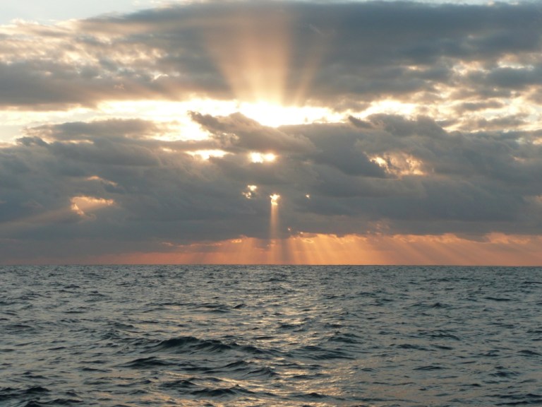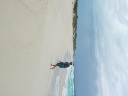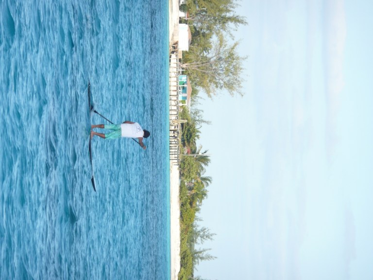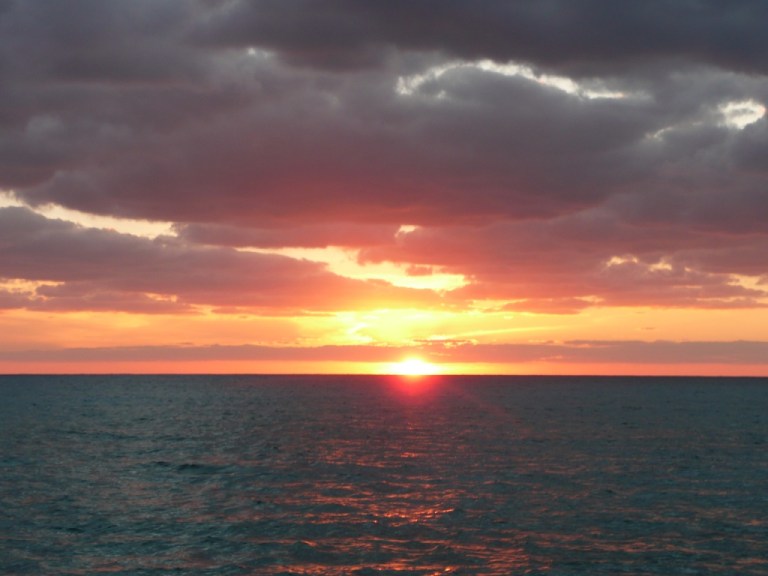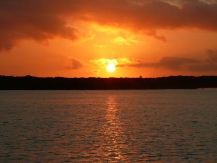 The Name alone sounds enticing. Well we weighed our options…..take 2 days to travel south around the southern end of Long Island and across to the Ackins and on to the Turks and Caicos or take one day to travel north around the north point of Long Island and across to Rum Cay. We listened to the weather forcasts for the coming days and opted for the latter. The Winds over the next few days are to continue to come from the North and begin switching to the Northeast and then East. We made our way north on the same path as we had taken the previous day. The seas had indeed calmed down immensely and the wind had lightened as well. We were joined by a friendly young dolphin who swam from his mother up to our boat to play for a few moments. We always take this as a good omen. Once around the point we had a broad reach that although light enabled us to make good time over to Rum Cay. We anchored well before dark, relaxed and enjoyed watching children play on the beach and a young man who paddled across the bay standing on a surfboard. After yet another beautiful sunset we prepared ourselves mentally for the next leg of our journey. Tomorrow we will travel from Rum Cay down to Mayaguana on an overnight sail that should take us about 23 hours.