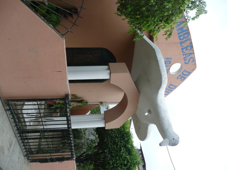 David, Trudy, Michael & I took a day and traveled by gua gua (public taxi) to Puerto Plata about an hours drive away. Costs for transportation for the 4 of us came to about $24.00 round trip. The countryside outside of the towns is just beautiful. At one point during our drive we passed a large group of people walking along both sides of the road, all wearing black pants or skirts and white shirts. I was able to ask and understand from the driver that there was a funeral and the immediate family, were the ones in black and white. We also got to listen to some great Dominican Music along the way, so we were introduced to the music of Rubby Perez. We were dropped off at the city center and were immediately met by a tourist host. These kind gentlemen are provided by the office of tourism and are available to assist tourists in seeing the sights in and around Puerto Plata. Rafael was our guide for the 1st hour or so of our visit. He took us into the beautiful San Felipe Cathedral and then walked with us out to the San Felipe Fort that overlooks the Town and Harbor. We walked around the fort and took some pictures, we then stopped for a cold drink. We tipped Rafael and thanked him for his assistance but told him we wanted to explore on our own. He looked very disappointed but left us in peace.