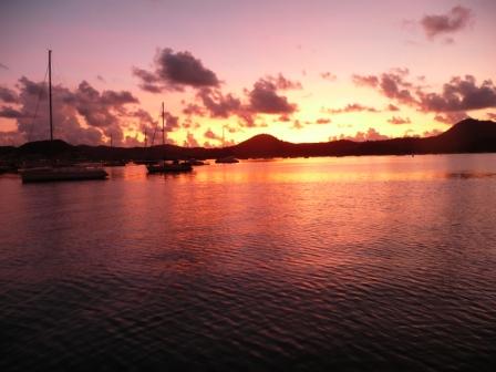 We compared notes again in the morning and found that we had all gotten up in the middle of the night for the 2:00am weather update from NOAA. The disturbance was now upgraded and named, Tropical Storm Tomas. It also had taken the more northerly of the tracks and was due to arrive with plenty of rain and winds gusts > 39mph within the next 24 hours. We joined a small floatilla of boats all moving from outside of the bay into the protection of the Marina. Misery loves company and we had plenty, company not misery. We shared the G dock with s/v DaniellStorey, s/v Diana, s/v Good Medicine, s/v Beauty and the Beast, s/v LosLoper , s/v Songbird, among others. We nestled DD into her slip and spent the rest of the day securing her to the dock with at least a dozen lines spiderwebbed in every direction and adjusted her ½ dozen fenders between her and the finger dock. We put on her sail cover and then lashed ropes around it to keep it from billowing in the strong winds. Wound her headsail tight with extra wraps of rope. We stripped her of her bimini and dodger, removed the blades from the Windgen, lashed down the Solar Panels, brought in the chartplotter and the handheld cockpit VHF microphone, and stowed anything that wasn’t attached securely to the boat. She looked naked but ready. There was no shortage of advice on preparing the boats for impending weather and plenty of hands to help. After securing our own boats the crews of G Dock then proceeded to secure unattended boats around us as a precautionary measure. A family of 10 from Poland who had chartered a sailboat for a holiday, suddenly found themselves hiding from a Hurricane. They decided to remain on the boat and were delighted to glean whatever information and assistance we could offer to help them prepare for the storm. TS Thomas continued on a heading that would take it between the Islands of St. Lucia and St. Vincent. It was predicted to become a hurricane after passing the Islands but changed its mind and decided to slow its forward progress and linger becoming a Category 1 hurricane just before it reached the Islands. The eye was expected to pass just south of St. Lucia around 2:00pm on Oct 30th. The winds began in earnest around 11:00am and we were without power and fresh water within the first hour. Many of the cruisers, not being afraid of a little wind and weather, donned their foul weather coats and ventured out and around the docks during the light of day. Mike and Dave were almost blown off of the dock by a couple of strong gusts. I went out to snap a few pics around the Marina of the last minutes adjustments and preparations. While leaning into the wind next to the dingy dock, I caught a small movement in the foliage next to me. A wet but still industrious hummingbird was enjoying a last minute meal before the winds became too strong to maneuver. He would release his hold on a twig, be blown back a few feet and battle his way back into the shrub, again grabbing hold and feeding on the red flowers that were within reach. Boats continued to stream into the marina as the storm intensified. We handled lines for a large Catamaran who took a couple of tries battling the wind before we were able to grab his lines and tie him off to the dock. Around twilight we heard a loud tearing and pounding. An unattended Catamaran a few slips away from us lost its headsail. A couple of men climbed aboard and braved the winds to drop and stow what was left of it. There was very little fetch inside the marina but during a few of the bigger blows, waves could be seen breaking against the hulls of the boats on the outer docks. As darkness fell the wind and rain became steadier. The neighbors of G dock retreated into their boats to watch the storm from portholes, hatches and windows. The winds and rain continued to build during the night as the eye moved out into the Caribbean. Being that St. Lucia was now situated on the Northwestern edge of the Hurricane she was hit with storm force winds and rain for a more extended period of time than St. Vincent to the south. It is amazing how water with the help of wind can find its way into any small gap, crack, or crevice. The rain and wind abated around 10:00am the next morning. The Crews of G Dock emerged from their boats damp but intact. We only saw a couple of unattended sailboats with damage to covers or sails however there were a few smaller powerboats that did not fare as well and had sunk during the storm, still tied to the dock. During the entire storm we never lost internet service and so were able to keep in touch with family and friend back home. We contacted our cruising friends that were further south to make sure they had weathered Tomas safely. Domino, made a 1:30am dash back to Grenada from Bequia when they saw Tomas shift north, ah the advantages of a powercat. Nauti – Nauti took a mooring on Canuoan and made it through. Queen Emma reported Admiralty Bay in Bequia was a washing maching with a number of boats sunk and one demasted as well as others who had to motor around because of poor holding. Hurricane Tomas generated winds in excess of 70mph on the Island of St. Lucia though I don’t think Rodney Bay saw much over 50mph. It also dumped 8 inches of rain causing massive Mud and Landslides destroying homes, roads, and bridges. There are 14 reported dead with another 7 missing. Soufriere near the Pitons is completely cut off from the rest of the island with all roads leading to it destroyed. Power is being restored as quickly as possible. Many areas are without clean drinking water and are cut off from getting supplies. Only 1 of 4 radio stations on the Island remained up and running during the ordeal and has provided a steady stream of information allowing persons to call in who are looking for contact with friends and family and answering questions about services and relief efforts. Communications are slowly being reestablished, Digicel, the primary provider of Cell Phone communica