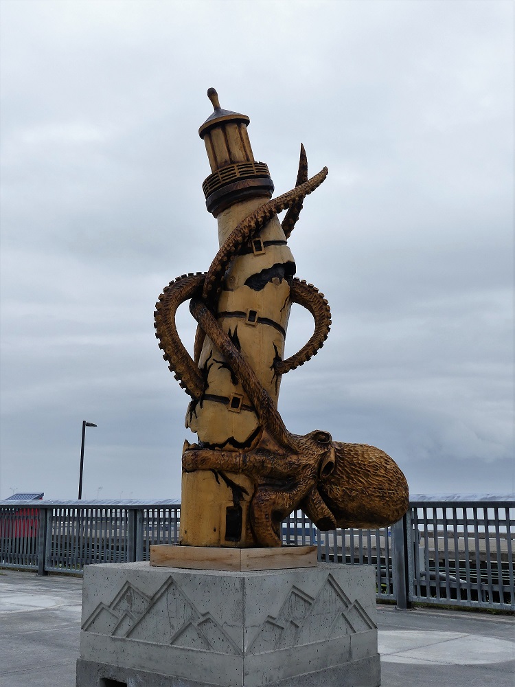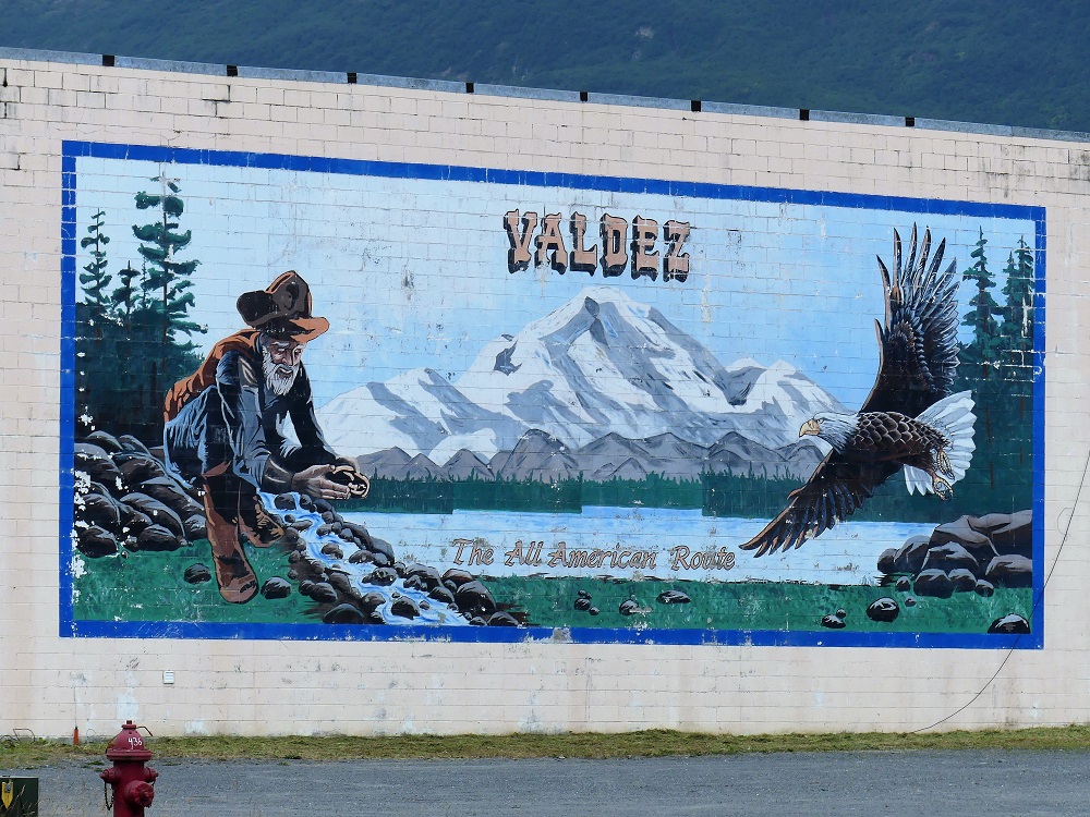 08/02 – 08/05 As much as we have enjoyed Williwaw it was time to continue our journey. We headed south to Seward, AK. We had a small delay when one of the tires on J&J’s 5th Wheel blew, but the pit crew jumped into action and we were back on the road in minutes. The town of Seward offers camping right along the bay as the structure of the soils there were found not to be stable enough to support buildings in the event of another earthquake. The 1964 9.2 Earthquake destroyed many towns along Kenai peninsula. The city did not rebuild on the waterfront and has wisely installed fee stations all throughout the area and now charges $20 per night to camp there. We can’t complain as they have a lot of amenities to service the ever increasing number of RV’s that travel here in the summer. Dump Station, Potable water, bathrooms and hot showers and areas for Tent campers as well. We spent a the next few days riding our Bikes around town, fishing, and sampling the local fare. Sierra and I even joined a local 5k run to support the Alaska Sea life Center, an aquarium and sea mammal rehab. I figured it was at Sea Level and a good one to ease back into. I came in 5th in my age group. Of course I did not see how many in my age group ran the race there might have been only 5 but it was for a good cause and I got a T-Shirt and admission to the aquarium on that day. This is a popular stop for Cruise ships as there is a vibrant downtown and lots of little shops and restaurants. I even caught a glimpse of Bigfoot here! We had a great burger at a popular local burger joint named Reds that operates out of busses and a fancy dinner at Ray’s Waterfront. We would heartily recommend both. I spent one day just riding around photographing the murals around town. Although very busy, this colorful town has lots to offer.