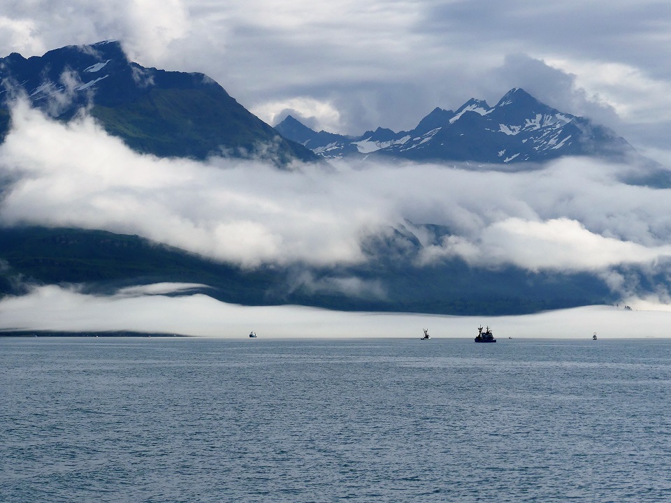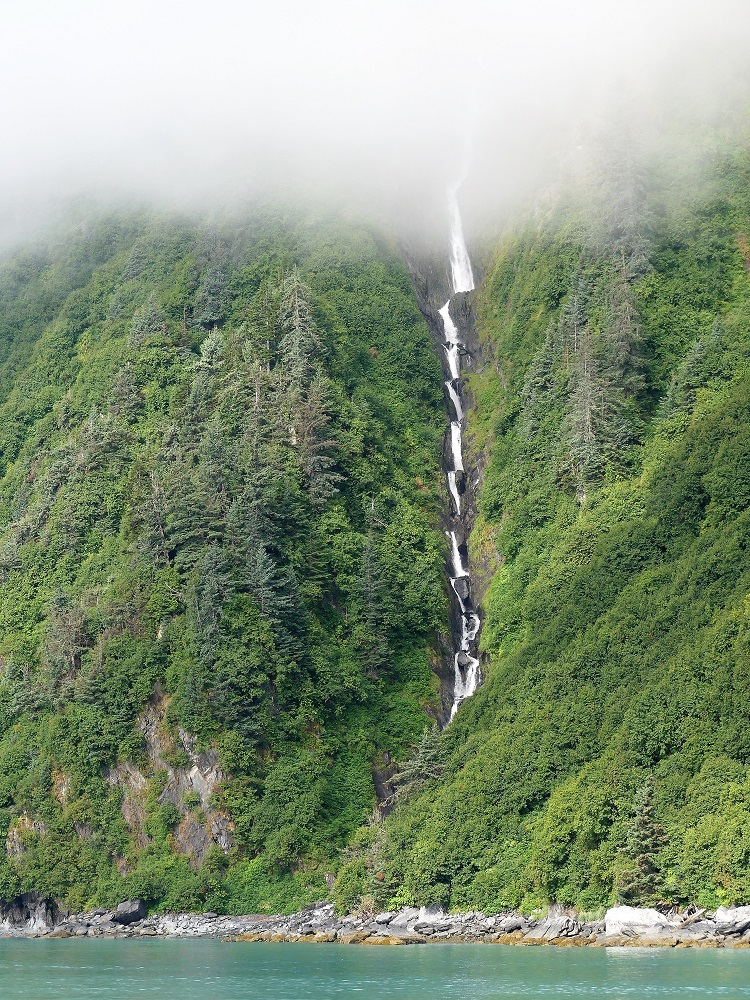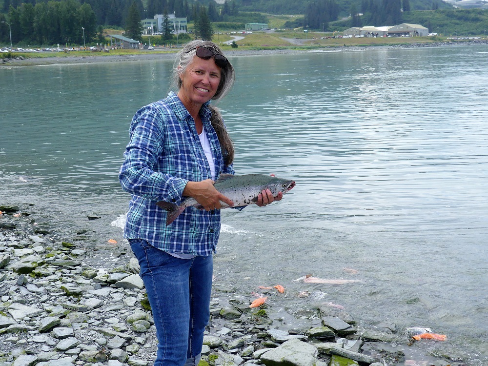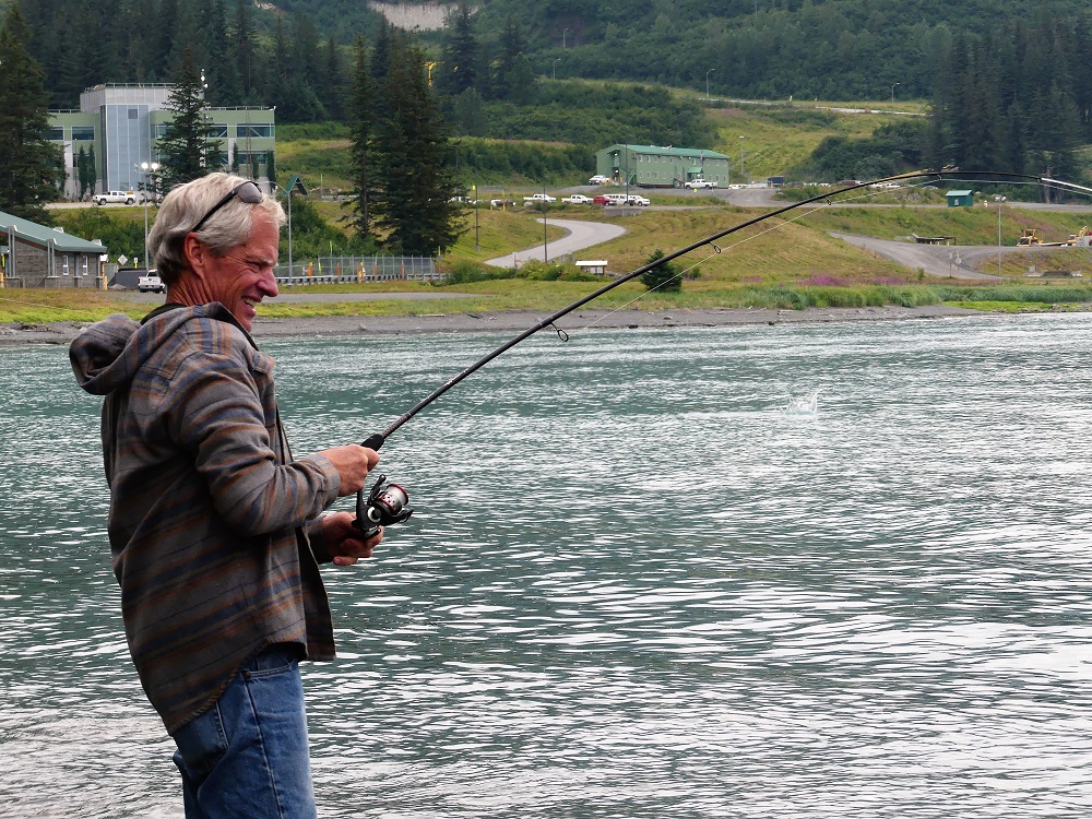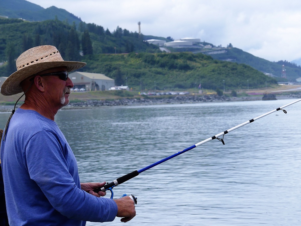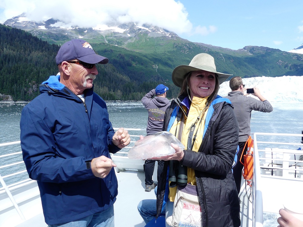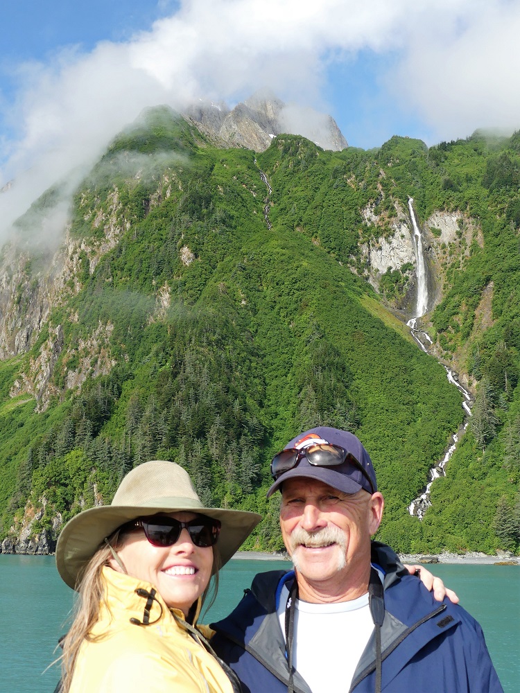 07/20 – 07/25/19 Since we wisely chose not to make the 60 mile trek to McCarthy-Kennicott we arrived the day before we were due to check into the our home base at Chena RV Park in Valdez AK. It was still cloudy and misty but the waterfalls were amazing as we made our way into town. J&J stopped by the RV park and were given a recommendation by the owners Judy and Everett to drive over to Allison Point campground for the night and she would call us as soon as our spaces became available in the morning. Allison Point also had a special allure as the Pink Salmon were running and that is where many local go to snag fish. We bought some snagging hooks and made our way over to the campground. We parked overlooking the bay and watched the locals technique for snagging the salmon. We rigged our poles and were soon catching salmon too. What Fun!!!! There was a small black bear that would come down to the edge of the bay and grab the carcasses left by the fisherman along the shore. The wildlife in and around the bay was incredible. As we fished the otters and Sea Lions did their own fishing offshore. Every creature it seems takes advantage of this abundance of food when it is plentiful. We had a wonderful fresh salmon dinner and hosts at the RV Park smoked the rest of our catch for us and treated us like family. It turns out they too spend time down in Parker, AZ in the off season. We spent the next few days exploring the town of Valdez. We really enjoyed the Valdez Museum and the Maxine & Jesse Whitney Museum. We also booked a Boat Tour out to Meares Glacier with Stan Stephens Cruises. We were a bit worried the morning of the tour as we woke to a heavy fog and thought we wouldn’t see much but as the boat pulled away from the harbor and into the bay, the fog began to lift and our eyes were on overload with all the beauty and wildlife. We were visited by a humpback whale, Orcas, Harbor Seals, Sea Lions, Otters, Puffins, and numerous other shorebirds. When we arrived at the Meares Glacier the Captain stopped the boat approx a ¼ mile from the base and we were entertained by the harbor seals basking on the large chunks of Ice that were floating beneath it. We were even lucky enough to watch a large chunk of glacial Ice calve into the bay and the Captain had to turn the boat into the wave it created. Wow!!! Valdez has definitely won our hearts as one of favorite places so far in AK.