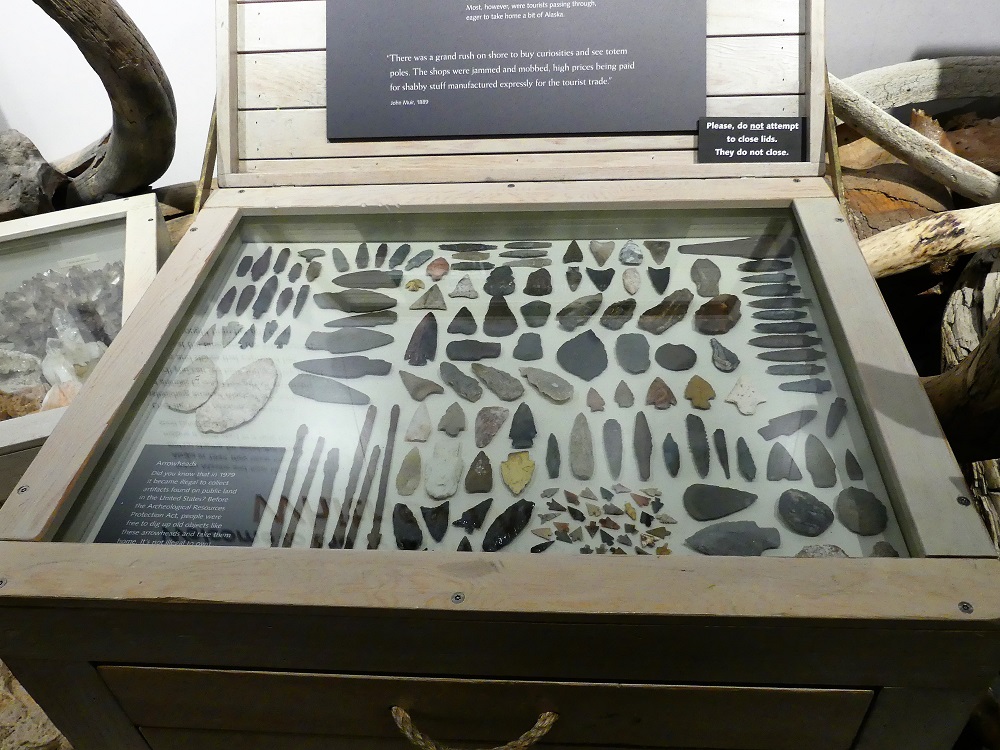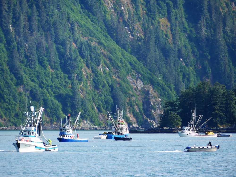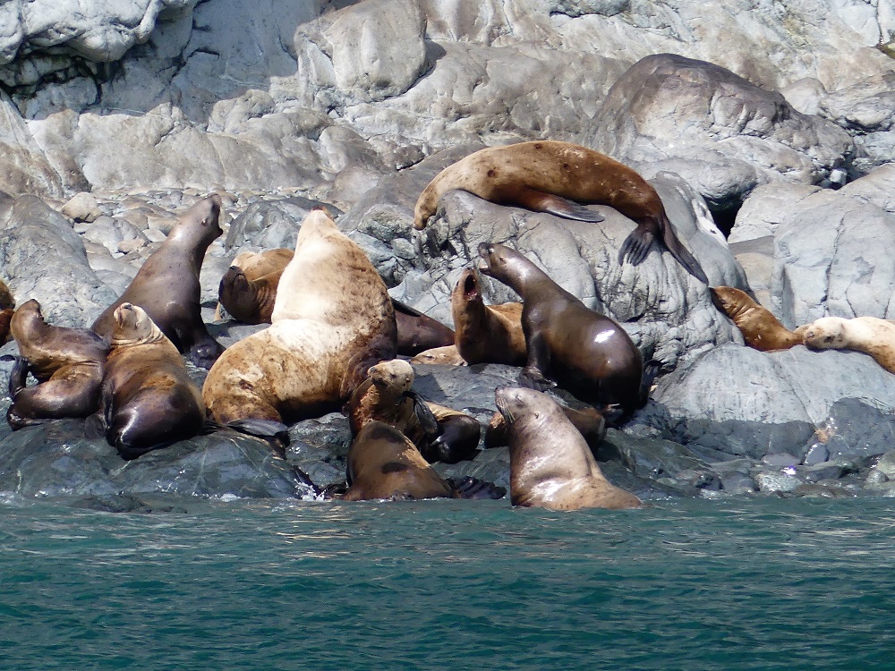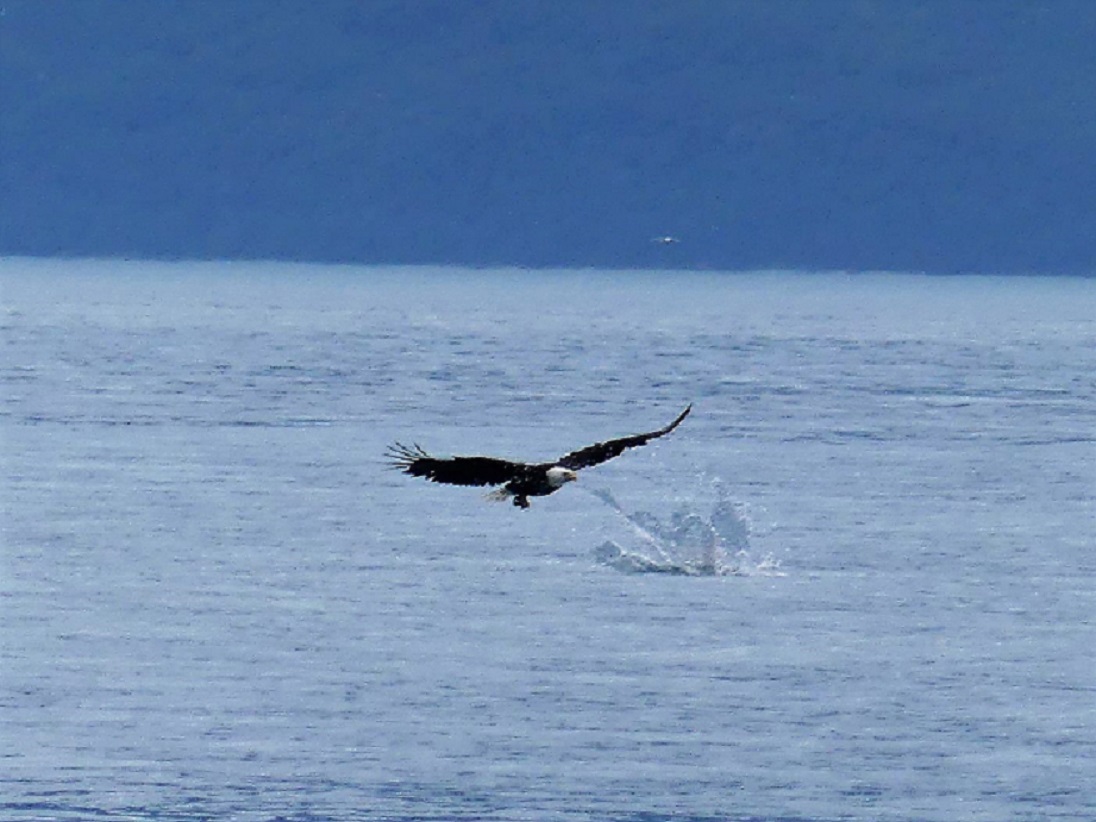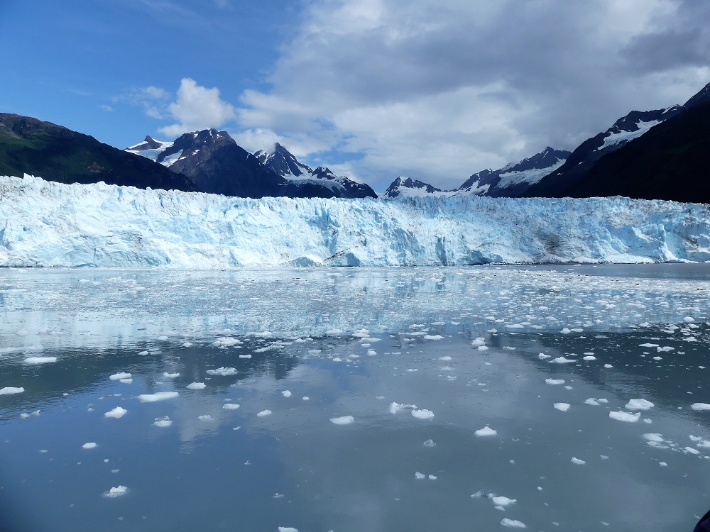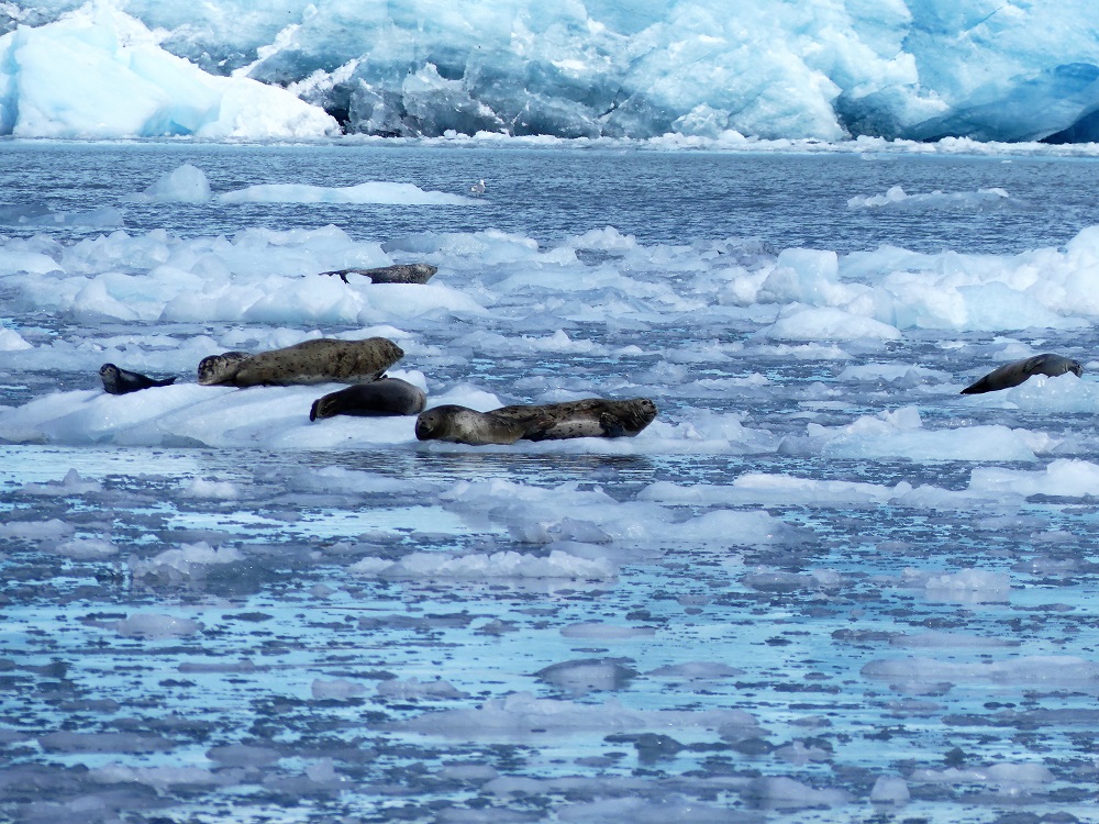 07/20 – 07/25/19 Since we wisely chose not to make the 60 mile trek to McCarthy-Kennicott we arrived the day before we were due to check into the our home base at Chena RV Park in Valdez AK. It was still cloudy and misty but the waterfalls were amazing as we made our way into town. J&J stopped by the RV park and were given a recommendation by the owners Judy and Everett to drive over to Allison Point campground for the night and she would call us as soon as our spaces became available in the morning. Allison Point also had a special allure as the Pink Salmon were running and that is where many local go to snag fish. We bought some snagging hooks and made our way over to the campground. We parked overlooking the bay and watched the locals technique for snagging the salmon. We rigged our poles and were soon catching salmon too. What Fun!!!! There was a small black bear that would come down to the edge of the bay and grab the carcasses left by the fisherman along the shore. The wildlife in and around the bay was incredible. As we fished the otters and Sea Lions did their own fishing offshore. Every creature it seems takes advantage of this abundance of food when it is plentiful. We had a wonderful fresh salmon dinner and hosts at the RV Park smoked the rest of our catch for us and treated us like family. It turns out they too spend time down in Parker, AZ in the off season. We spent the next few days exploring the town of Valdez. We really enjoyed the Valdez Museum and the Maxine & Jesse Whitney Museum. We also booked a Boat Tour out to Meares Glacier with Stan Stephens Cruises. We were a bit worried the morning of the tour as we woke to a heavy fog and thought we wouldn’t see much but as the boat pulled away from the harbor and into the bay, the fog began to lift and our eyes were on overload with all the beauty and wildlife. We were visited by a humpback whale, Orcas, Harbor Seals, Sea Lions, Otters, Puffins, and numerous other shorebirds. When we arrived at the Meares Glacier the Captain stopped the boat approx a ¼ mile from the base and we were entertained by the harbor seals basking on the large chunks of Ice that were floating beneath it. We were even lucky enough to watch a large chunk of glacial Ice calve into the bay and the Captain had to turn the boat into the wave it created. Wow!!! Valdez has definitely won our hearts as one of favorite places so far in AK.