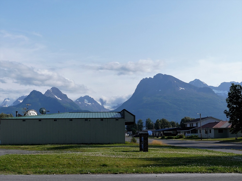 07/28/2019 – I woke up early and took Sierra for a walk and then crawled back into the tent and slept for another couple of hours. Bob and J&J have been very accommodating and offered us their couches but we are already relying on them for rides and meals and so opted to at least try the tent gig. If the RV is not repaired and it continues to rain we may need to take them up their offers. We are blessed with good friends and their morning coffee was hot and welcome after a damp night. Mike and Jim drove over to the Repair shop but as expected for a Sunday, no one was around and things were locked up tight. We decided to take a drive over to Palmer to explore the town. They are known for their enormous vegetables in this farming community. We walked through the garden next to the visitor center and museum. This area was settled when the US government offered land in the newly acquired territory of Alaska to anyone who was willing to build a farming community there. While at the visitors center, Mike’s phone rang and he almost didn’t pick it up as he did not recognize the number. Our RV was repaired and ready to be picked up. Thank goodness for this unexpected but very welcome news. We cut our tour of Palmer short and drove back to Wasilla to pick up the RV. With a new fuel pump, filter and seal on the inside of the fuel tank, we gratefully climbed back into our little home and drove her over to the Lake Lucille campground to rejoin our Caravan. Just a couple of days ago I was feeling like she was a bit small for this trip but after that night in the tent she felt spacious and warm. Thanks to the folks at EGM Automotive for their excellent service and going above and beyond to work through the weekend to get her back up and running.