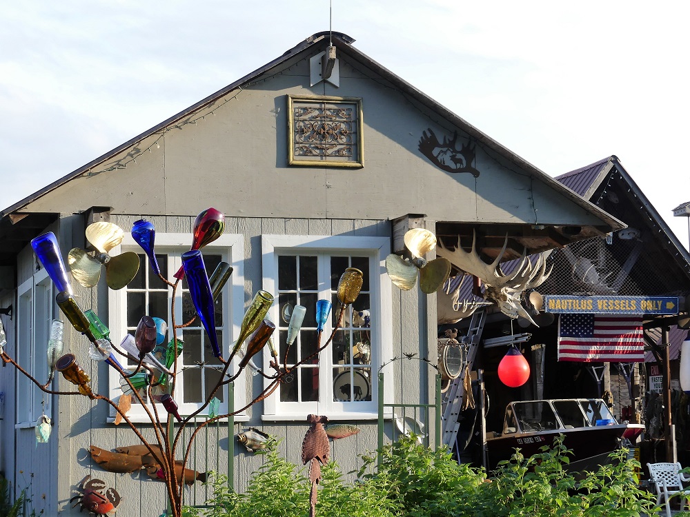 08/05 -08/07/19 We made a brief stop on the way out of Seward at a small Weir where we watched the Sockeye salmon leaping to swim upstream to spawn. We headed across the Kenai Peninsula and on down to Homer. We drove out to the Spit and although very touristy it is a fun place to visit and heck we are tourists. Homer is know for it’s marvelous Halibut fishing but at over $300 per person for a charter we opted to fish from shore. No Luck. We did however purchase some wonderful fresh Halibut and Scallops and spent time bike riding, watching the local fisherman, SUP surfers, and taking walks along the elevated boardwalks through the many shops that line the Spit out to Lands End, the southern most point of the Kenai Peninsula. We all enjoyed and admired the unique and unusual sites around the Spit each in our own way. Of Course our visit was not complete without a required stop at the Salty Dog Saloon where we added our names to the thousands of others who have tacked a dollar bill up on the walls, ceilings, and doors of this infamous bar.